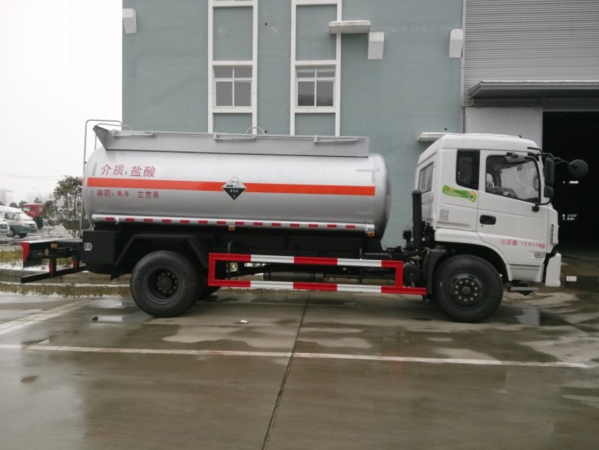 湖北潤力專用汽車有限公司東風特商腐蝕性物品罐式運輸車,罐體有效容積:8.5立方米, 鹽酸,亞硫酸,乙酸,稀硫酸